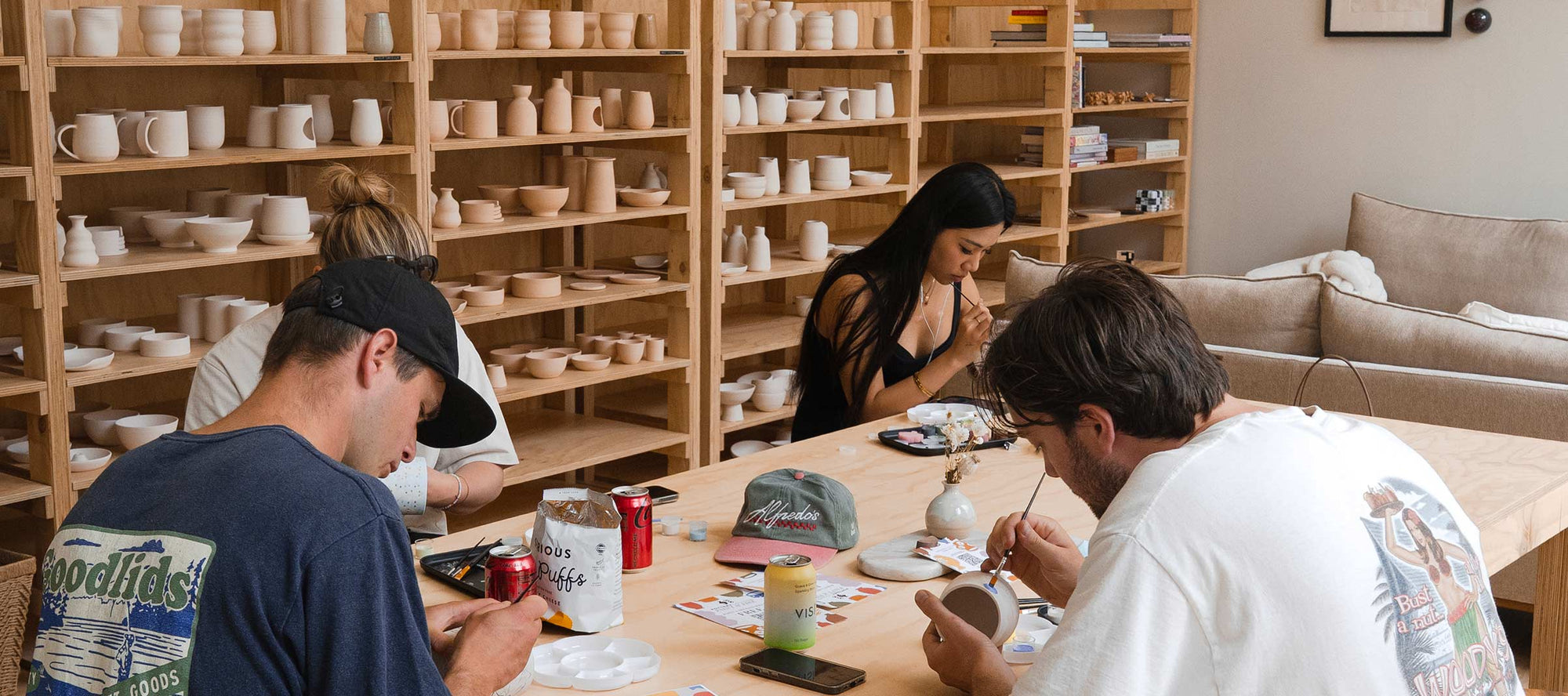 We can accomodate up to 12 guests in the pottery lounge at any one time. If you want to take the space for a private event please reach out to us via email.